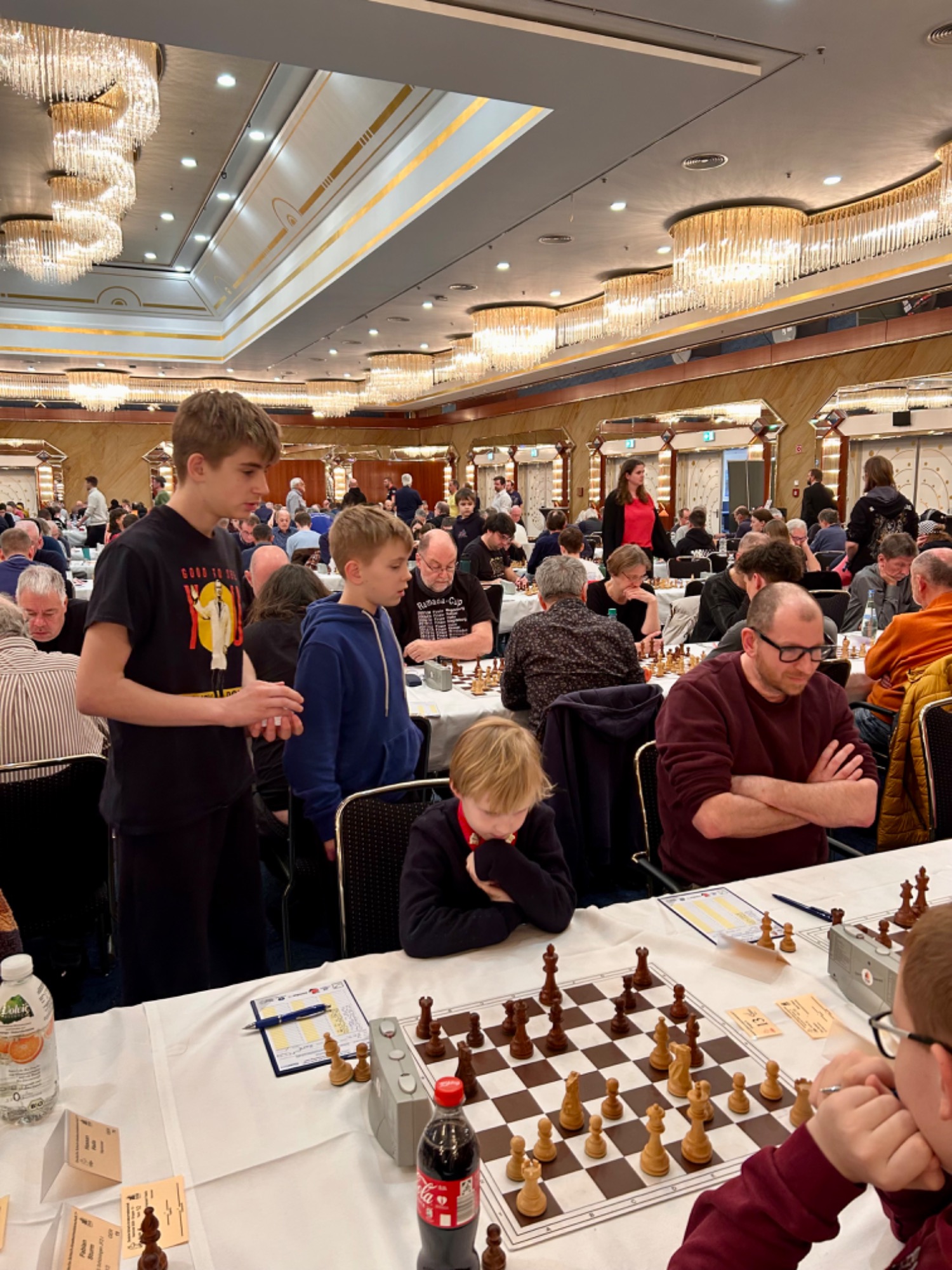 Mit Dr. Stephan Klos und den Heinold-Brüdern machten sich auch drei Mitglieder der Schachfreunde Bad Hönningen auf über den Rhein, um an diesem stark besetzten Turnier teilzunehmen.
