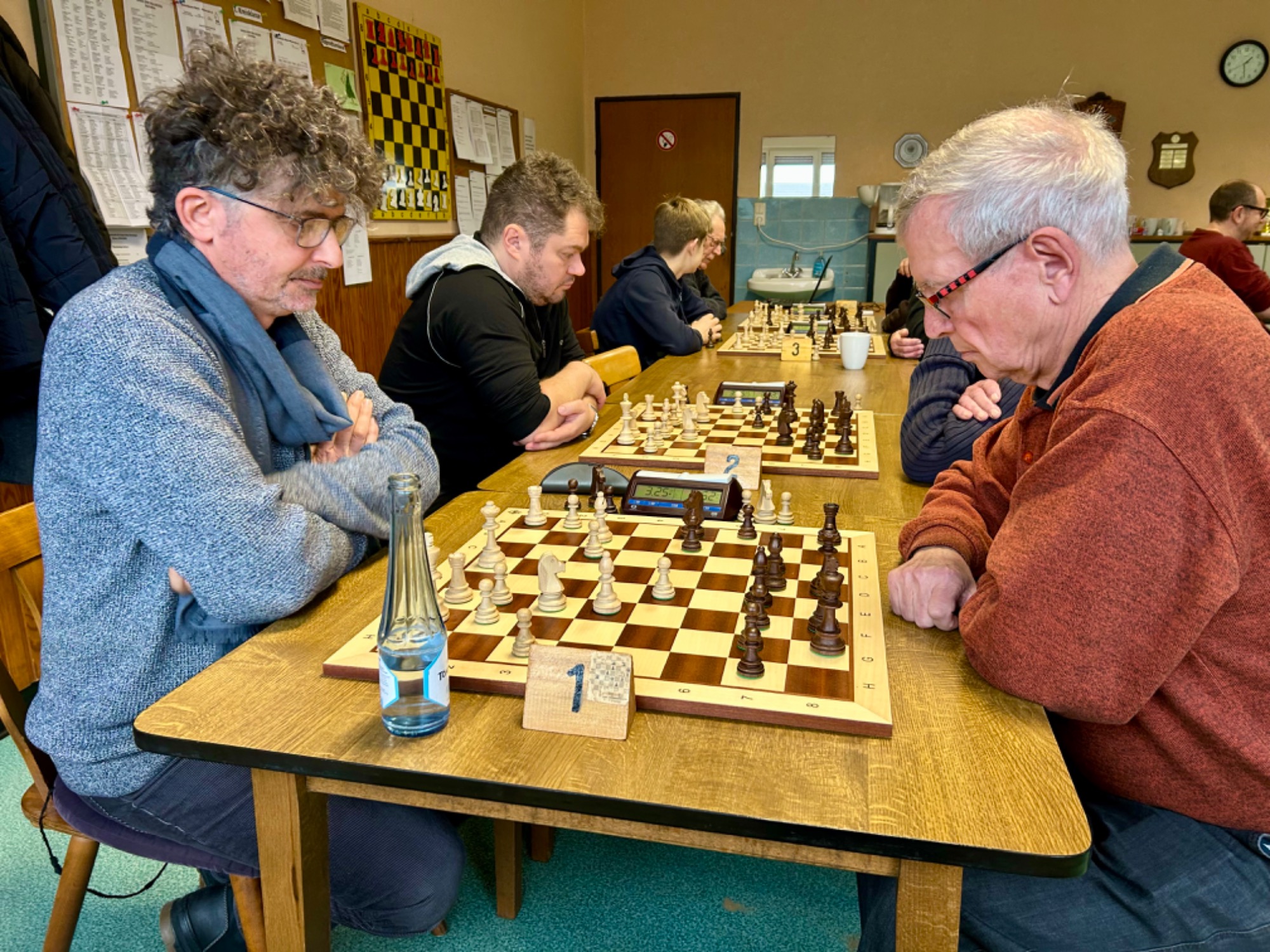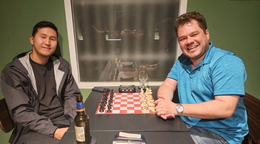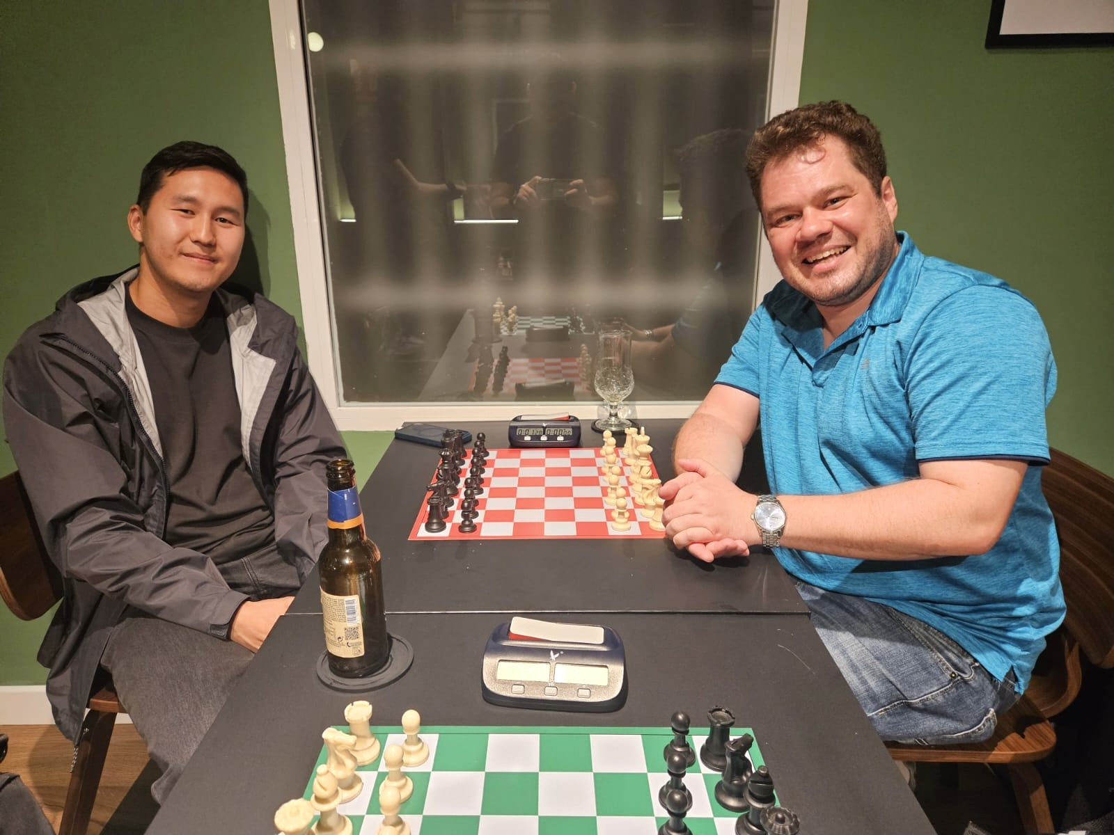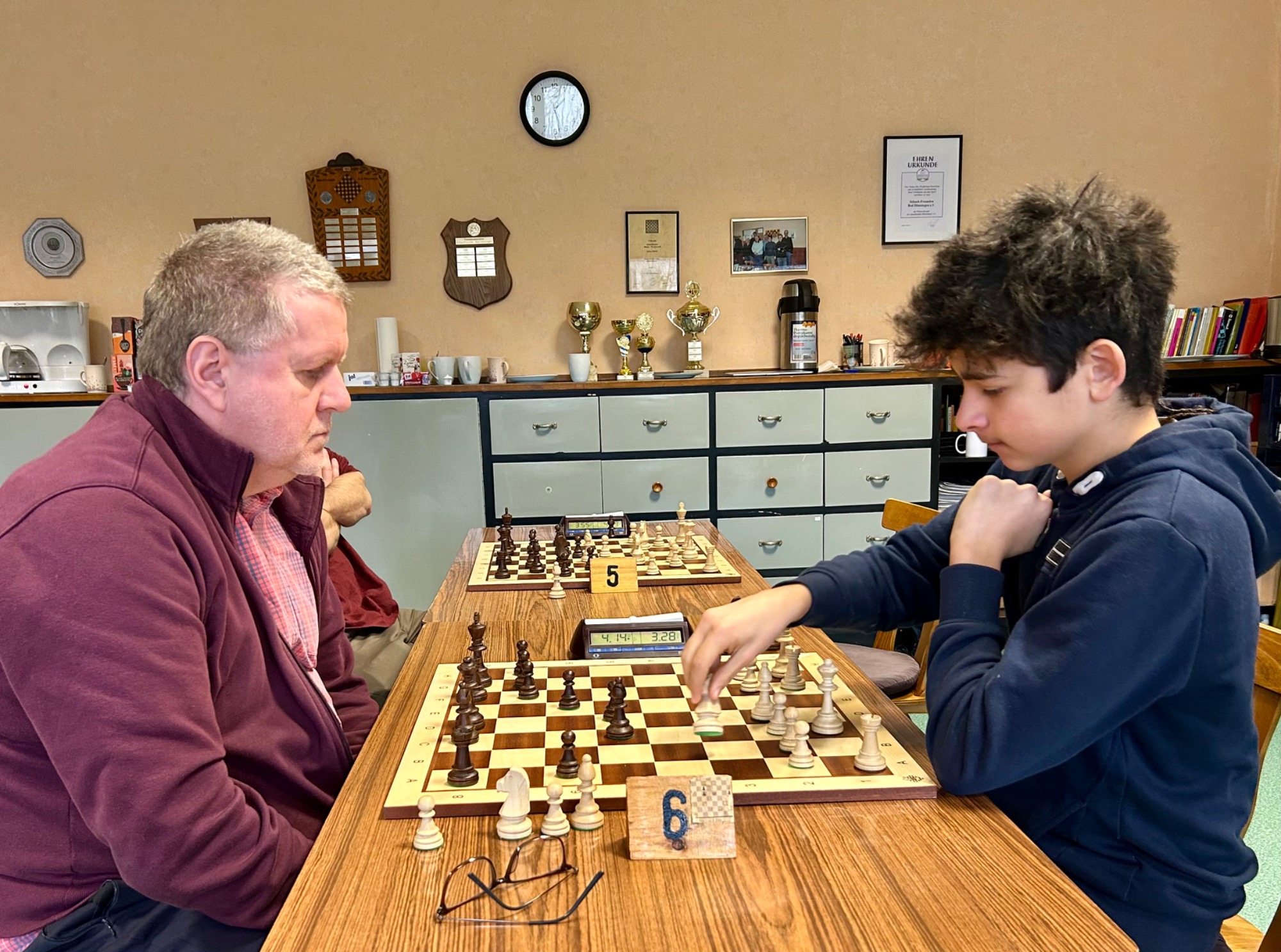 Der ältere Bruder von Vadims Gegner hatte im Verlauf der Partie leichte Vorteile, war am Ende jedoch ebenfalls mit einem Remis zufrieden. Da er an diesem Brett nicht spielberechtigt war, wurde uns später der volle Punkt zugesprochen.